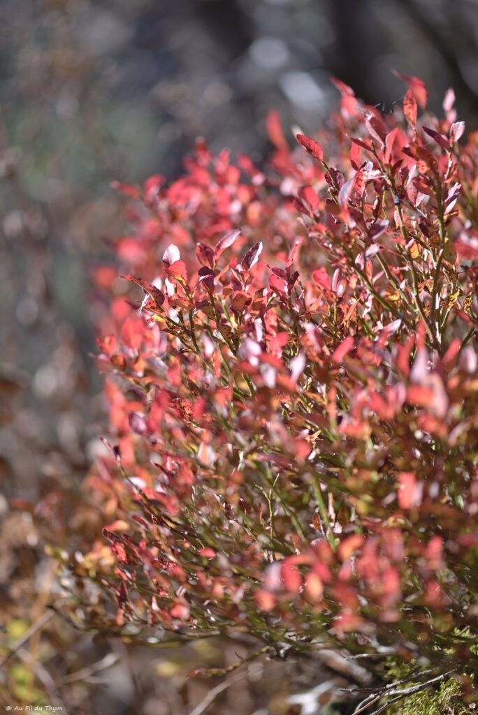 Si nous grimpons un peu dans les hauteurs, comme au pic de Lizieux (randonnée par ici), c’est la période où les myrtilliers ont adopté des dégradés de vert au jaune puis rouge. Ceux dans les rocailles on même pris leur couleur rouge vif, donnant une teinte de feu aux pentes..