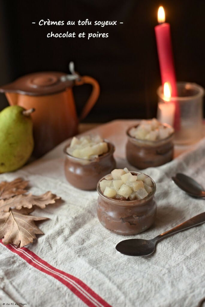# Recette : Crèmes au tofu soyeux, chocolat noir, poires
