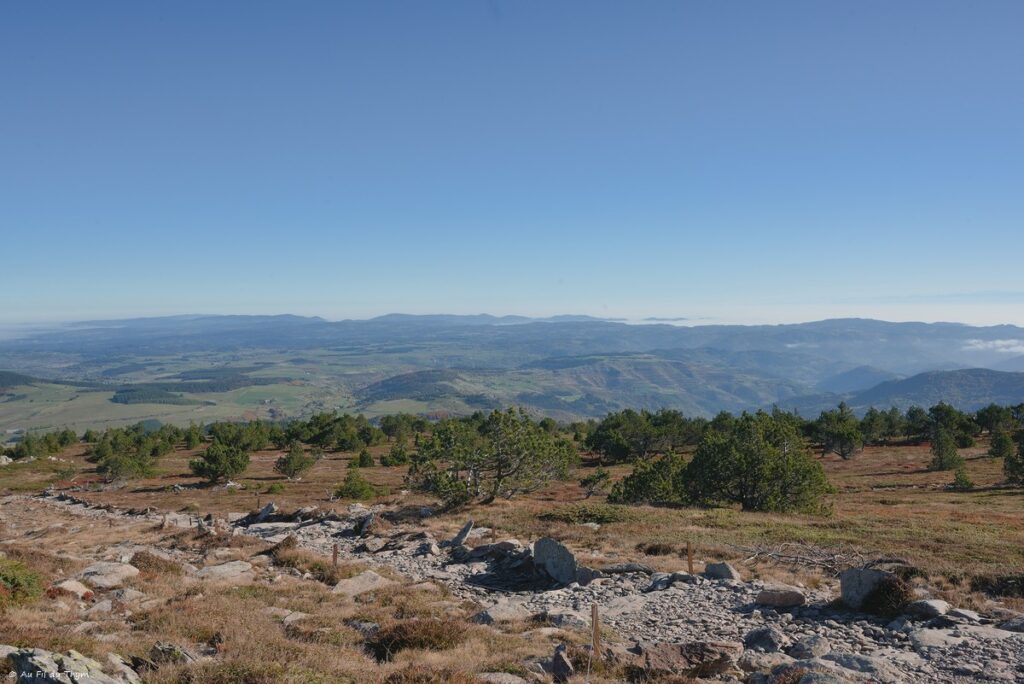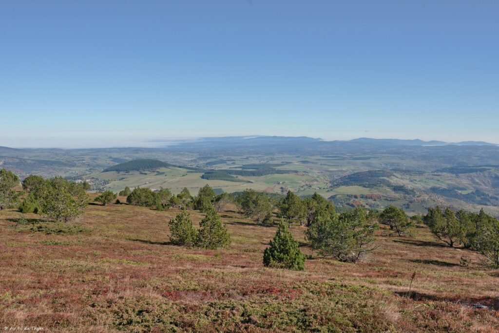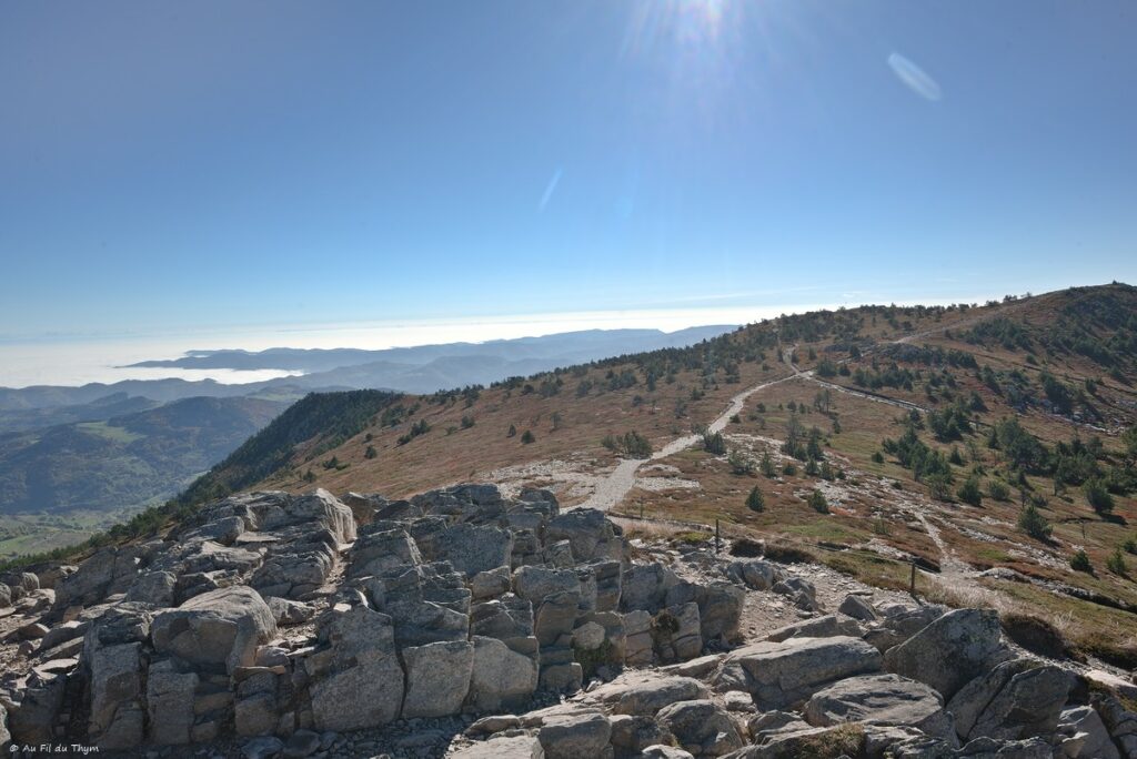 Si vous avez lu la dernière balade botanique, peut être avez vous vu que hasard des évènements familiaux nous (r)amènent pour ces vacances d’automne en Haute Loire. Outre les visites familiales, ces vacances impromptues représentent des occasions pour randonner (tôt) le matin et prendre une bouffée d’air de Montagne. Un de mes objectifs était de me faire enfin l’ascension du Mézenc par temps dégagé. La tentative de l’année dernière s’était soldée par une montée dans les nuages, avec une ambiance d’automne grise et brumeuse.. Mais cette année, la météo a enfin été clémente et m’a offert un soleil radieux. Et la randonnée c’est révélée une vraie « claque » de grandeur..