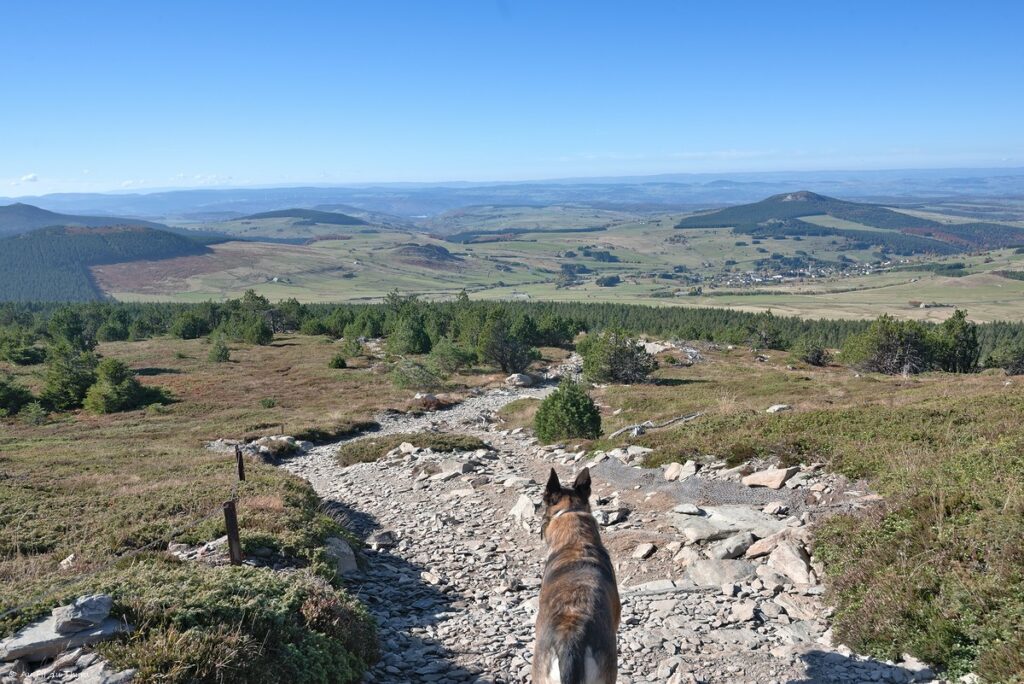 Et il est temps d’attaquer la descente. Nous reprenons un des chemins de pierre pour descendre côté Haute Loire.