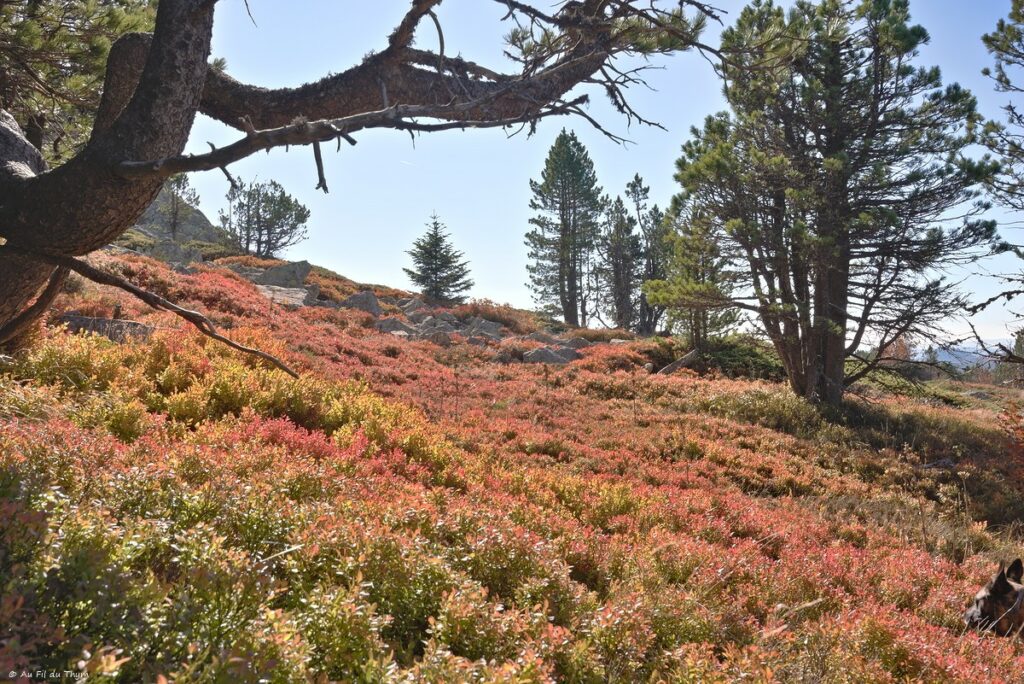 Entre, des étendues de sapins et des tapis de myrtillers s’étendre.. offrant de jolies couleurs d’automne entre le rouge, le vert, l’ocre..