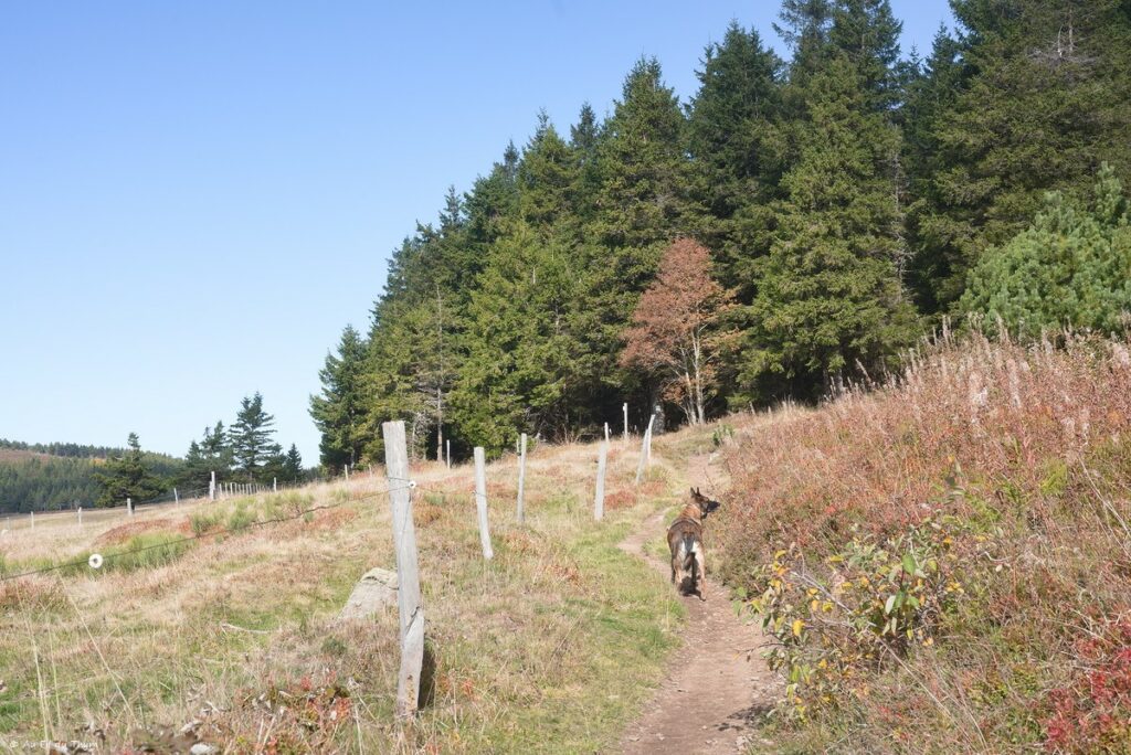Le chemin se fait petit, entre prairie et forêts