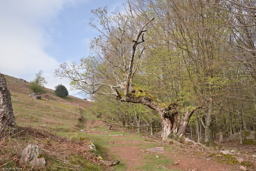 Alors que nous tournons autour de la montagne, nous arrivons en lisère d’un bois. A un moment, je reste ébahie par un vieil arbre en bord de route, qui continue malgré les ans, à suivre le bal du printemps.