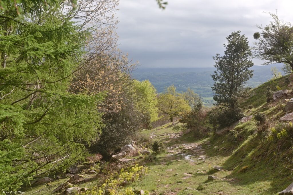 Les premiers mètres marquent déjà la tendance de la randonnée : Il va y avoir de la pente, et le vert tendre des feuilles d’arbres va nous accompagner.