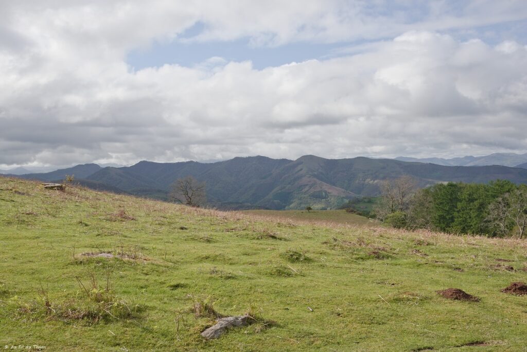 La déception est de courte durée quand je me tourne vers la suite de la randonnée, voyant le pays basque Espagnol se dévoiler au loin. Et oui, je viens de passer la frontière. 🙂