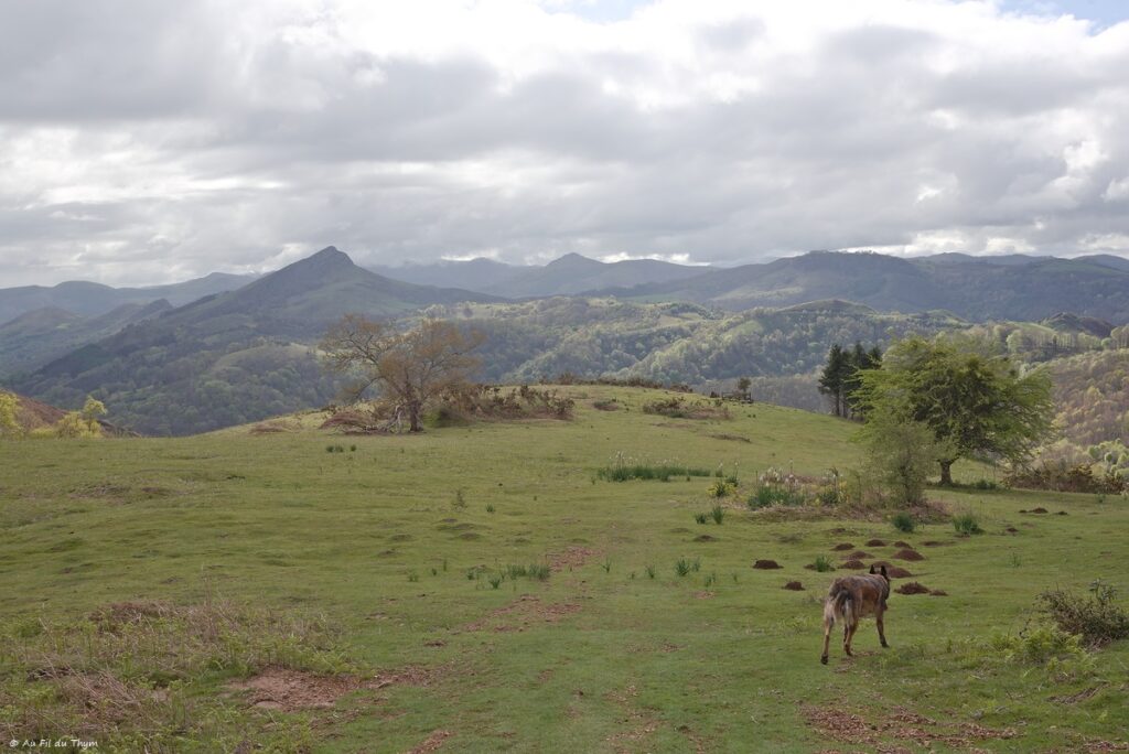 Au détour d’un lacer, le paysage ‘de l’autre coté’ se dévoile et nous offre un joli point de vue sur la Rhune, plus haut sommet de la région.