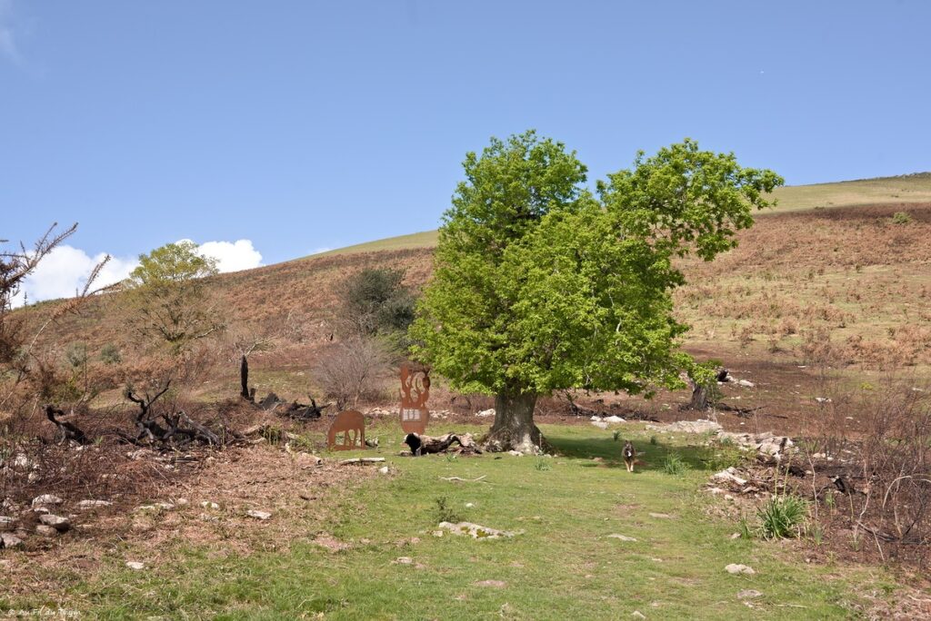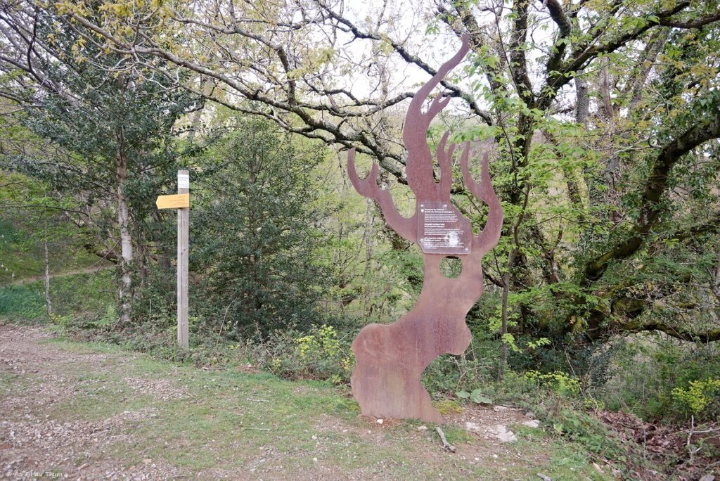 Et c’est là que j’attaque réellement la descente, de l’autre côté de l’Ibantelli. Avant de prendre le petit chemin qui descend dans la forêt, je m’étonne de la sculpture présente..