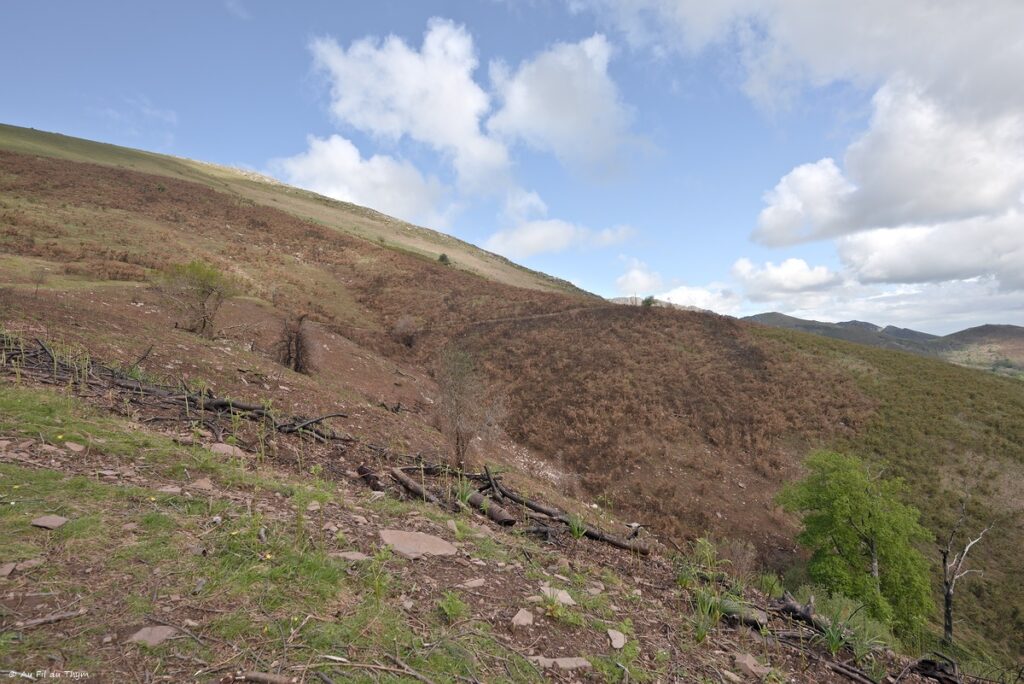 Après repérage des circuits de randonnée incontournable, j’ai vite ciblé l’Ibantelli, somment moins haut mais plus sauvage. J’ai donc dédié une matinée pour faire la montée (et la descente). Bien que situé à quelques kilomètres à vol d’oiseaux de la Rhune, cela a été une randonnée totalement différente, et pour être franche, une qui m’a franchement marquée. Entre les petits chemins cachés, les paysages printaniers, et le passage dans une zone ravagée par les incidents, ce fut un voyage complet en moins de 4H.